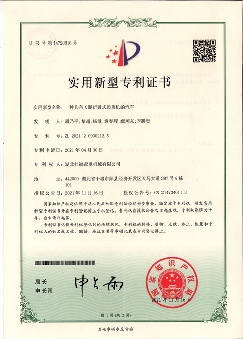 實用新型專利證書
